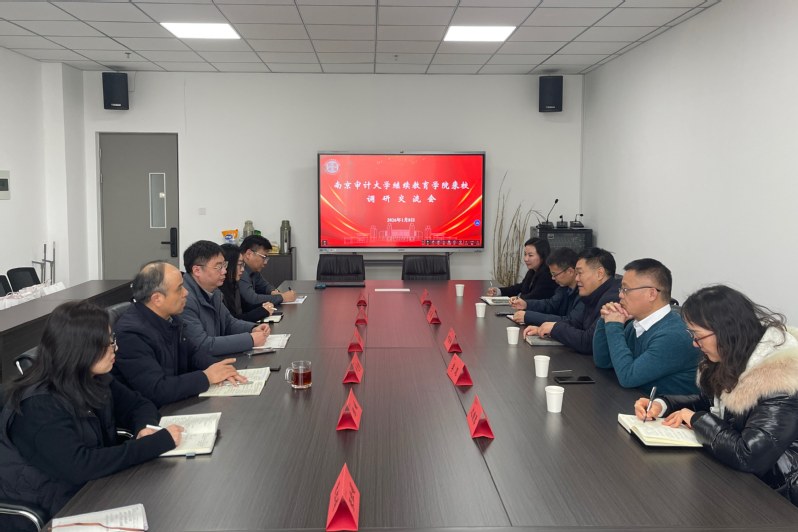 1 月 8 日下午,南京审计大学继续教育学院党总支书记何金旗、院长李昆带领一行 5 人组成的调研交流团队到访南通大学。南通大学继续教育学院院长卢志勇热情接待了来访客人,双方围绕继续教育领域的重点工作、创新实践及未来发展等议题,展开了深入且富有成效的交流探讨。