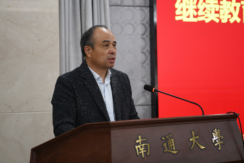 徐骏在讲话中,深刻阐释了“国家层面为何高度重视继续教育、人民群众为何迫切需要继续教育、南通大学为何要深耕继续教育” 三大核心问题。他回顾指出,学校继续教育工作始终深度对接“名城名校”融合发展战略,通过充分整合、高效协调校内外优质资源,在各业务领域收获了一系列重要成果。徐骏强调,继续教育作为高等教育体系的关键组成部分,肩负着建设全民终身学习型社会的重大使命与时代担当。做好新时代继续教育工作,既是服务国家战略、衔接“两个规划”的必然要求,也是赋能个体终身发展、践行教育公平的关键举措,更是高校彰显社会服务职能、实现自身高质量发展的核心路径。当前,国家政策的明确导向与南通地方发展的现实需求,为学校继续教育事业的蓬勃发展提供了广阔机遇与坚实支撑。围绕下一阶段学校继续教育高质量发展目标,徐骏提出三点要求:一是锚定国家重大战略方向,聚焦重点领域发展需求,精准优化专业课程体系,筑牢服务国家与地方发展的坚实根基;二是深度融入区域发展大局,紧扣本地主导产业发展痛点,量身打造定制化培训项目,持续深化校地校企协同育人机制;三是强化内涵建设与提质升级,健全全流程质量保障体系,加速推进数字化转型进程,着力培育特色非学历培训品牌,全面夯实战略服务能力。